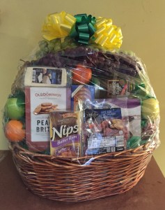 $150.00 (Back View) Cookies, candies, crackers, cheese, apples, oranges, red grapes, melon, bannas, etc Like Loading...